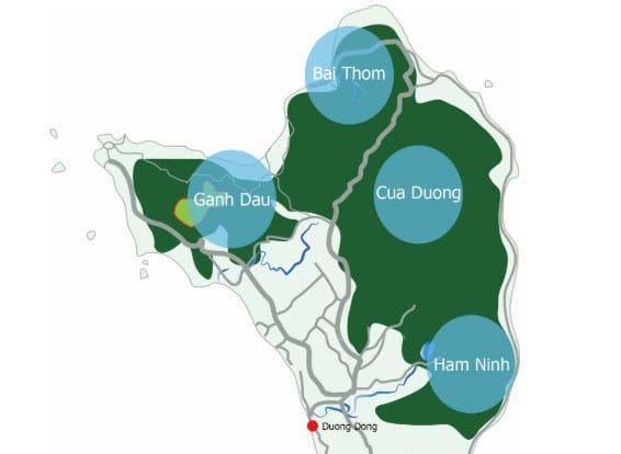 Le meilleur moyen de se rendre au parc national de Phu Quoc est de réserver une excursion d'une journée auprès d’une agence francophone ou de louer une moto. Les routes menant au village de Ganh Dau peuvent être assez cahoteuses, voire glissantes et dangereuses par temps de pluie, il est préférable d’être accompagne d’un guide local. Ceci étant dit, pour vous rendre dans le parc depuis le centre-ville, prenez la direction du nord en empruntant la rue Nguyen Trung Truc/DT973 que vous suivrez jusqu’à la jonction Duong Dong - Bai Thom, où vous prendrez à droite. Vous serez à destination environ 6 km plus loin. Temps estimé : environ 30 mn.