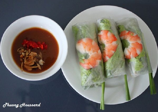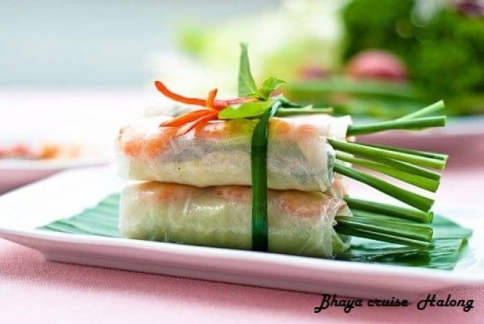 Rouleaux de printemps ou gỏi cuốn tôm thịt, littéralement "salade mixte roulée" en Vietnamien. Il est composé de porc, de crevettes, de légumes variés (pousses de soja, salade, carottes, concombre), des herbes aromatiques (Húng quế, codiandre, ciboul plat ou Hẹ, menthe), du bún gạo (vermicelles de riz). La différence de "nem ran" (ou cha gio) est que les rouleaux de printemps se serve à température ambiante et ne frit jamais.