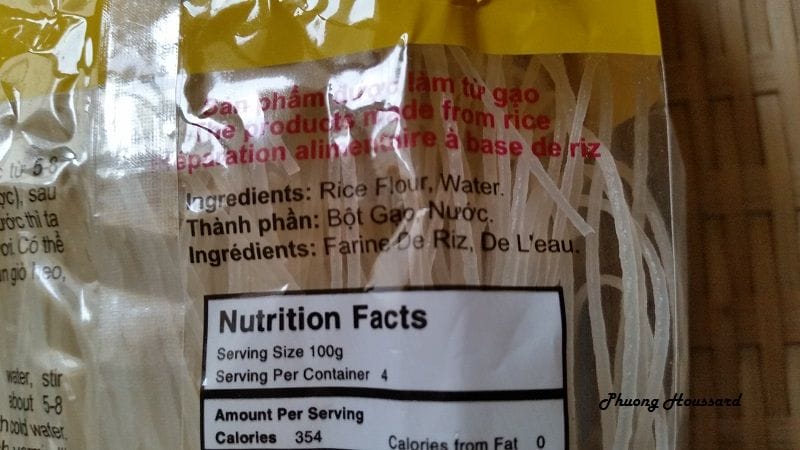 Emballage ( verso) des vermicelles pour rouleaux de printemps