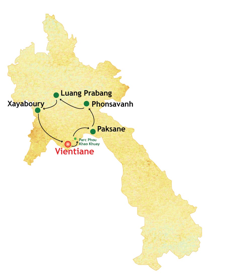 Petit-déjeuner au restaurant local à Sayabouli puis vous prenez la route en direction de Vientiane. Vous profitez du magnifique paysage, entre montagnes et Mékong. Une fois à Vientiane, troquez votre véhicule contre le moyen de transport local pour rejoindre à votre hôtel : le tuk tuk. Temps libre, puis transfert vers l’aéroport pour votre vol de retour (réservé par vos soins).